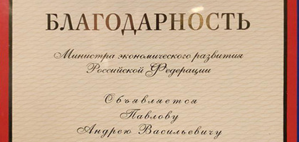 Президент и основатель ZENDEN Group Андрей Павлов награжден Благодарностью Министра экономического развития Российской Федерации за существенный вклад в развитие предпринимательства и активную общественную деятельность.
